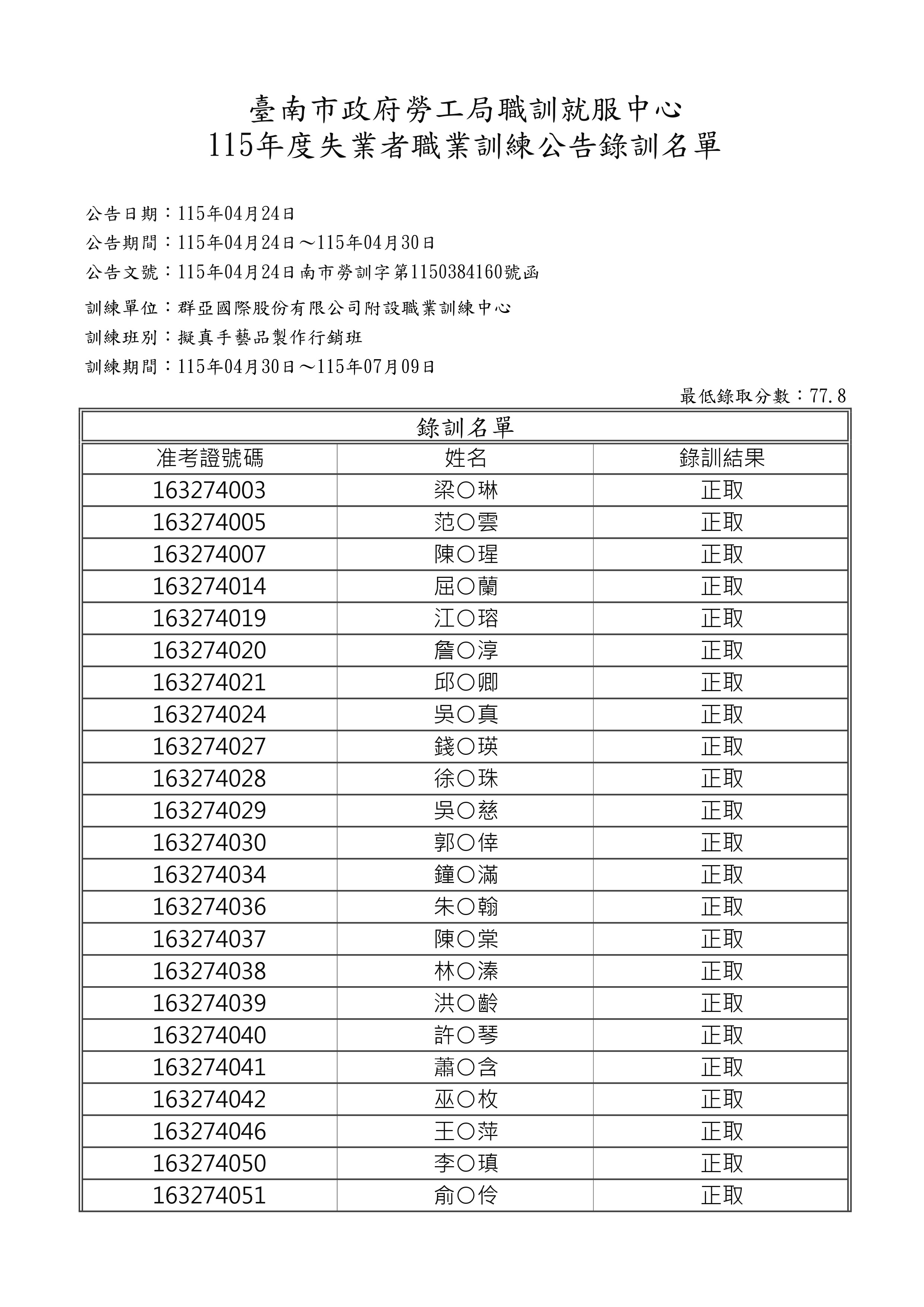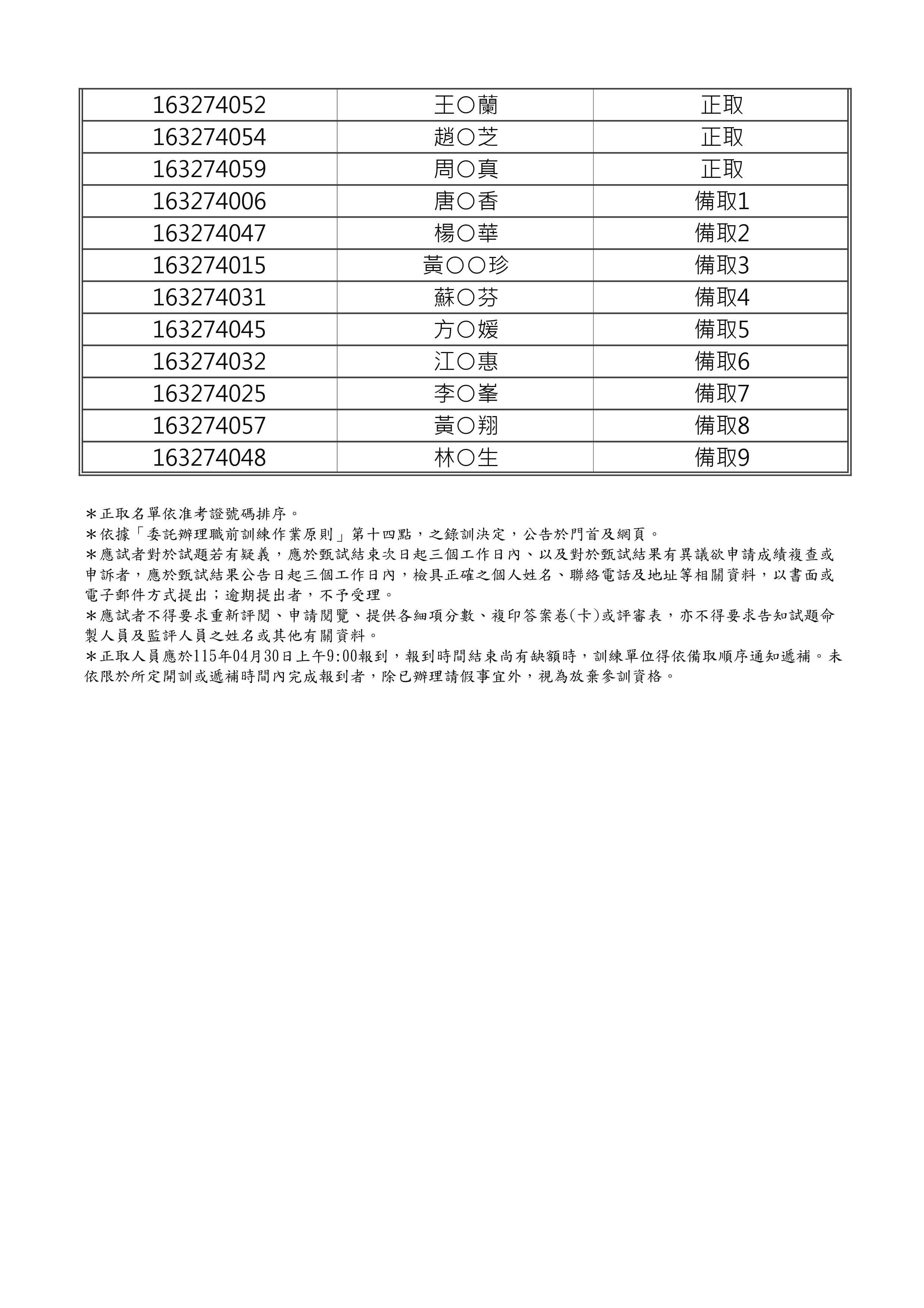 錄取公告