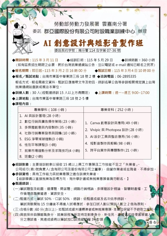 群亞職訓中心 (AI創意設計與短影音製作班 )
