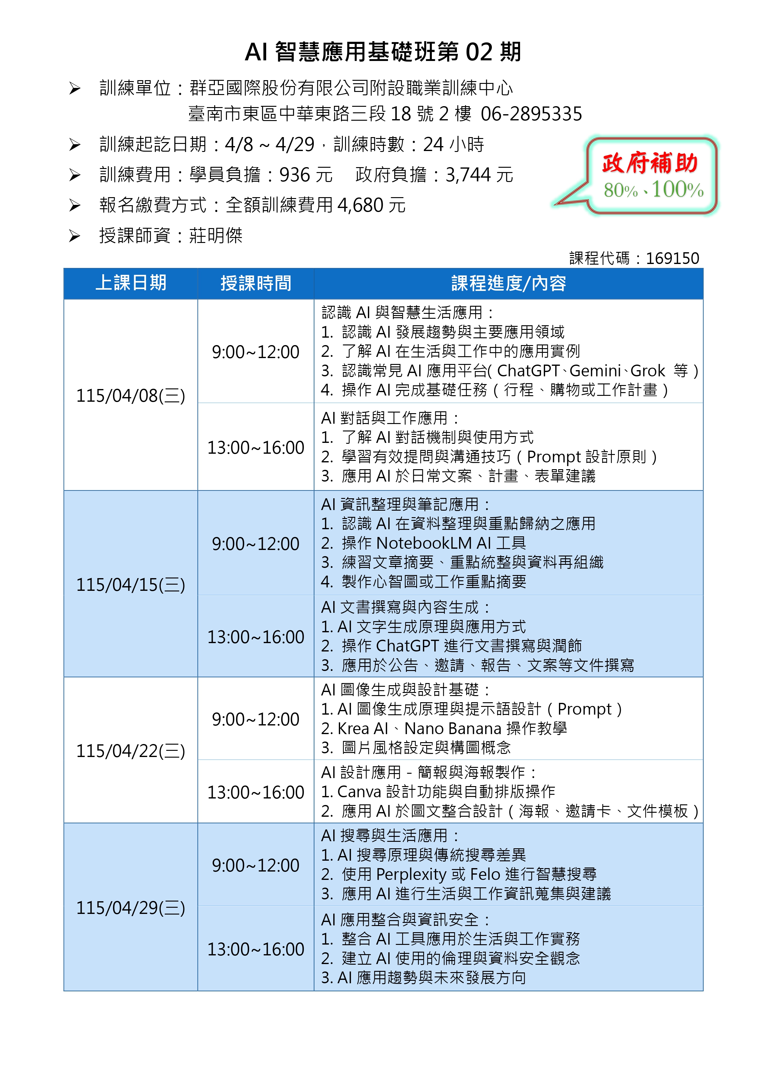 3. 熟悉AI 搜尋邏輯並活用於日常生活與專業領域中,具備跨平台 AI 整合應用與基礎安全設定操作能力。