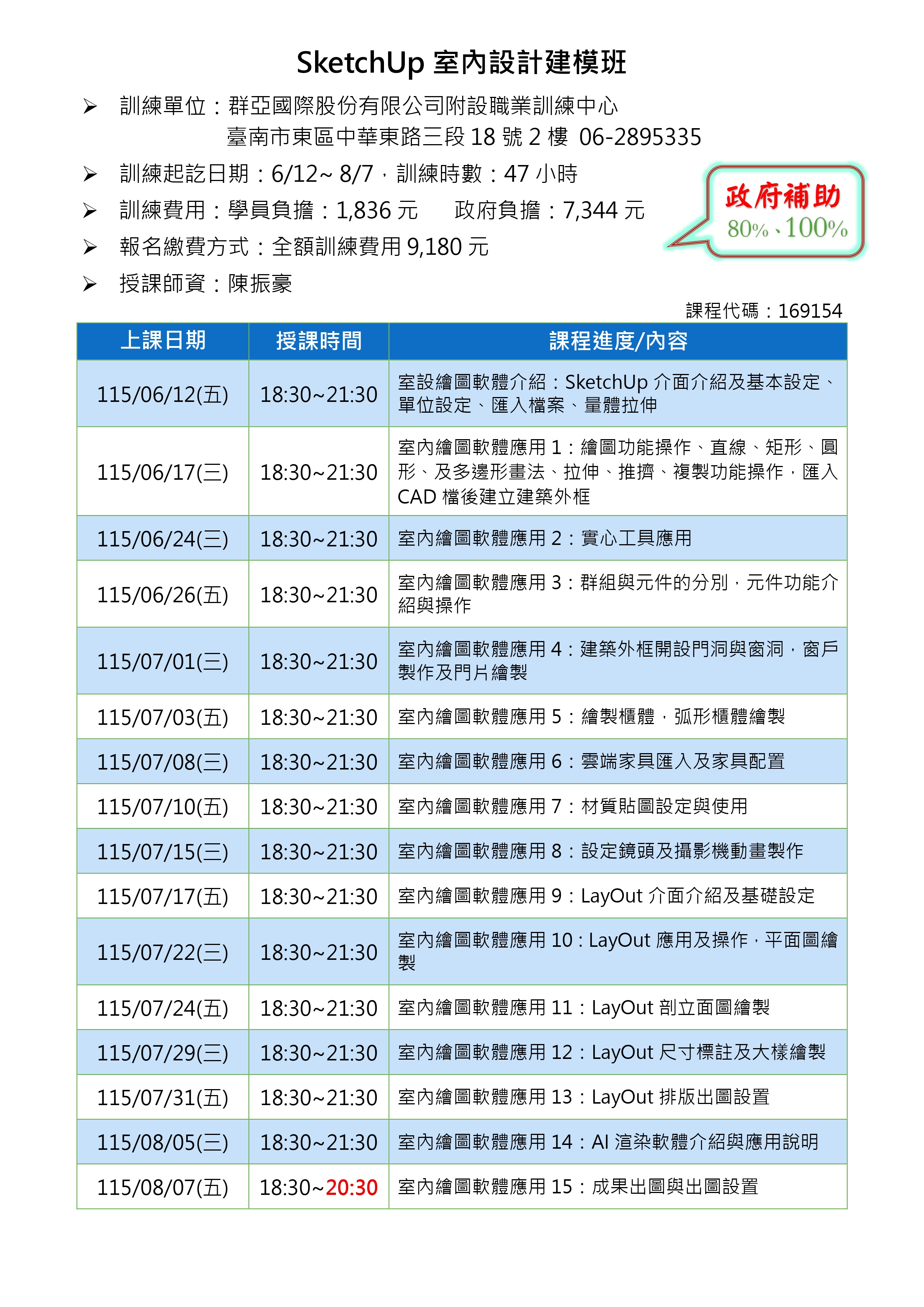 1.訓後能應用SketchUp及LayOut製作圖說,加強設計繪圖及與業主對圖能力
